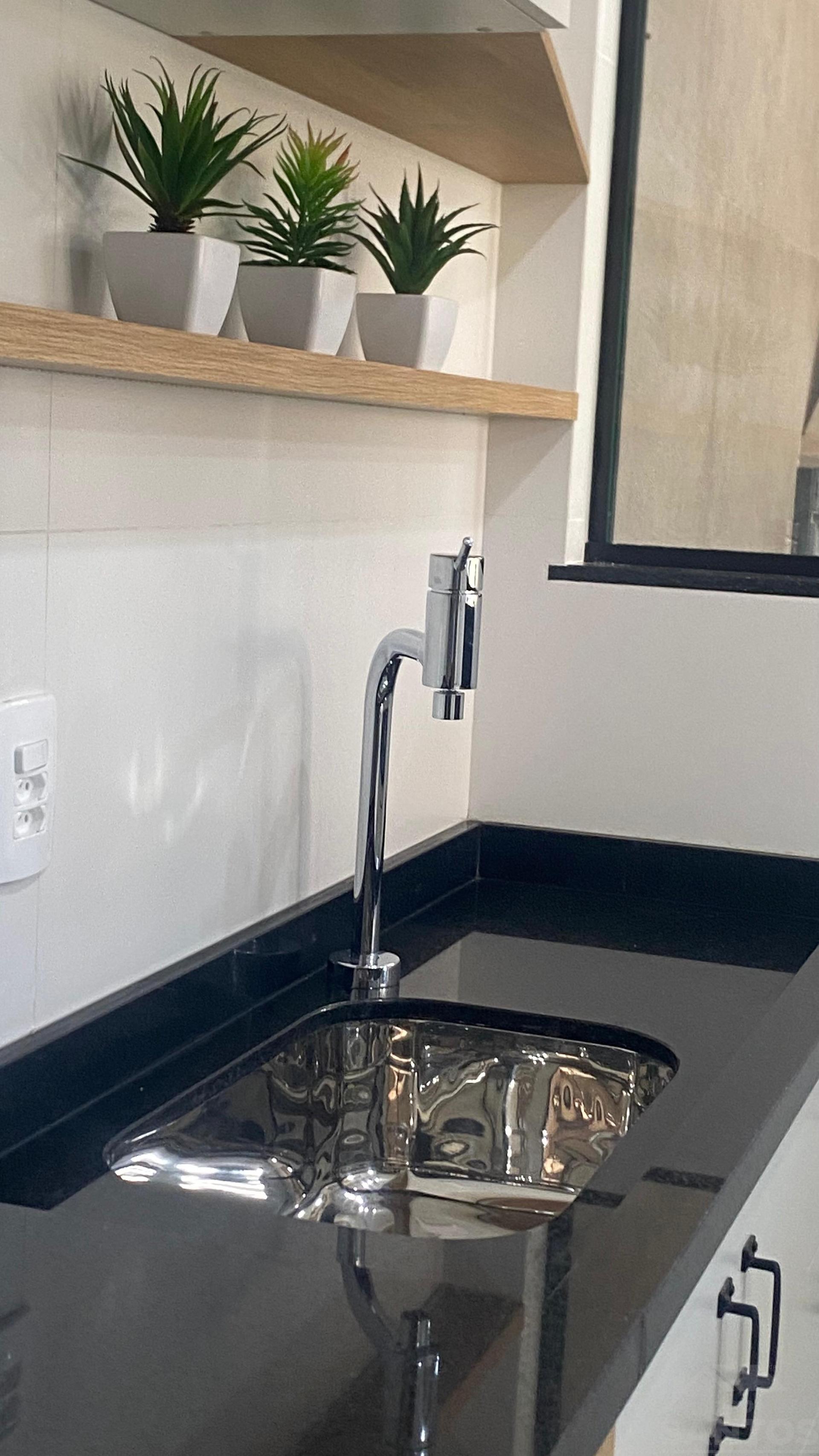 Sala e cozinha conjugadas, ideal para um ambiente moderno e prático